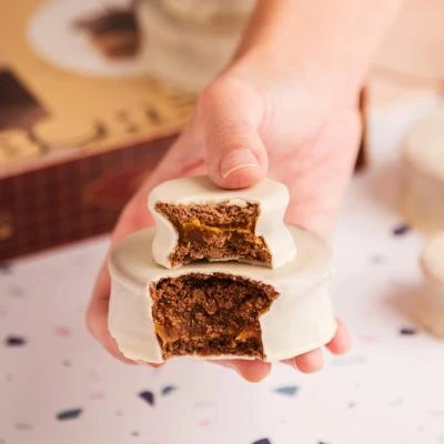 Disfruta de nuestros deliciosos alfajores, con tapas de chocolate suave y relleno de cremoso dulce de leche. Cada alfajor está cubierto con un lujoso baño de chocolate blanco, creando un contraste perfecto de sabores. Presentados en una elegante caja de 6 unidades, son ideales para regalar o disfrutar en cualquier ocasión. ¡Una experiencia gourmet que deleitará tu paladar!