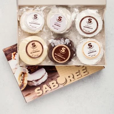 Caja surtida, 6 alfajores de 100gr cada uno.